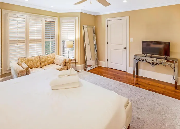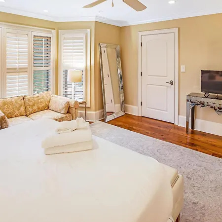 Villa On Broughton Main + Carriage By Lucky Savannah offers quick access to such tourist spots as the River Street Savannah, situated merely a 5-minute stroll away.